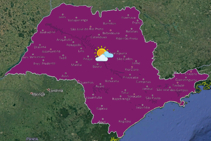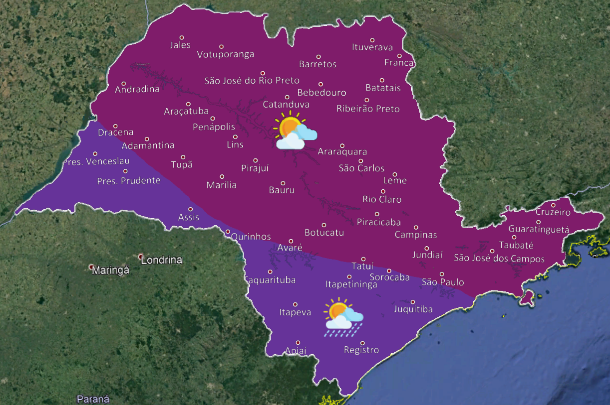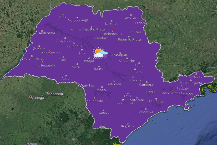 Chuva moderadas em pontos isolados sobre a região oeste do estado de São Paulo. Na cidade: de Teodoro Sampaio.
