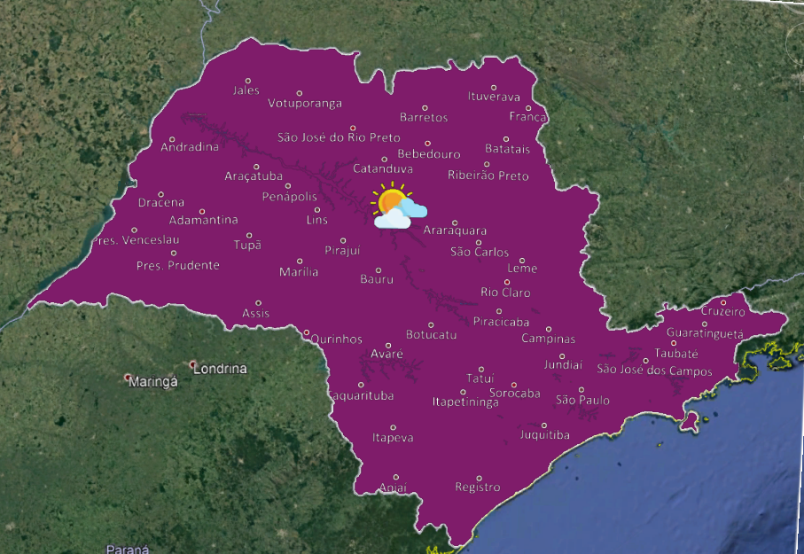 Pouca nebulosidade e sem chuva no estado de São Paulo