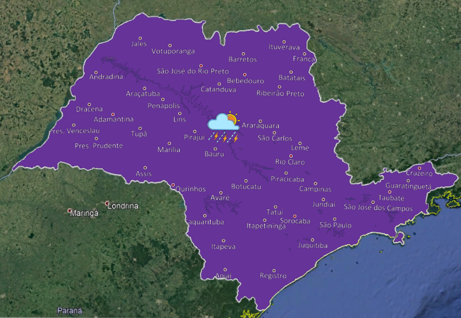 Chuvas isoladas, moderadas a fortes, no estado de São Paulo