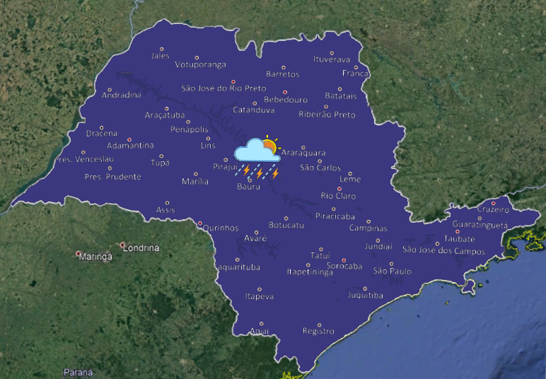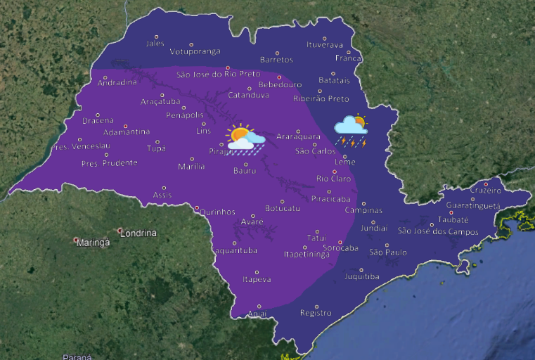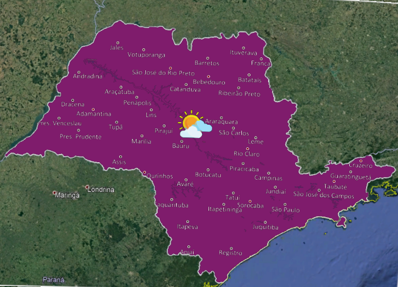 Boletim em áudio sobre a previsão do tempo em todas as regiões do estado de São Paulo.