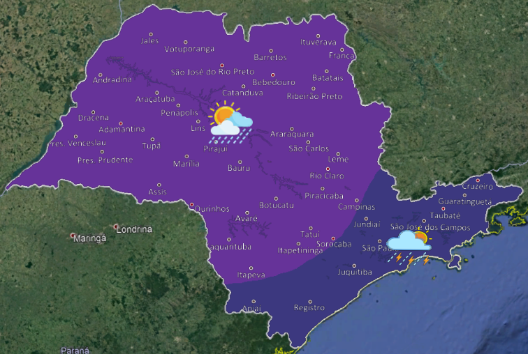 Poucas chuvas no sudeste/leste do estado de São Paulo