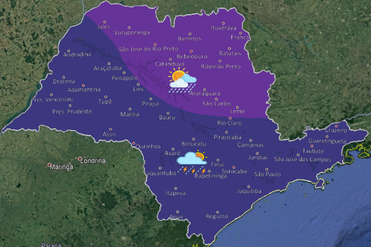 Chuvas isoladas no estado de São Paulo.